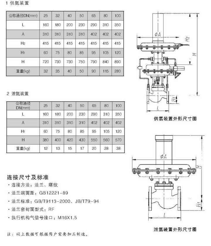 * 根据用户要求,槽罐氮封阀(供氮阀泄氮阀)阀体、阀内件、膜盖可采用其它牌号材质